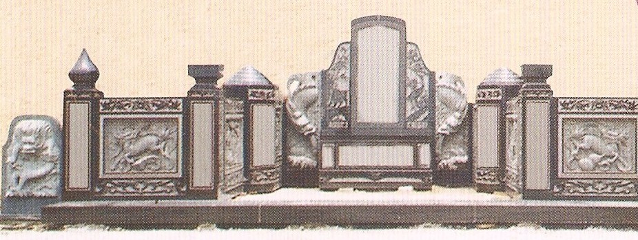 This chinese style memorial tombstone has detailed carvings with a traditional chinese design.