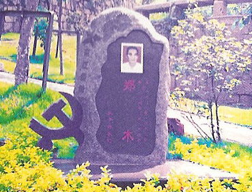 This upright gravestone is a chinese style memorial with detailed carvings.