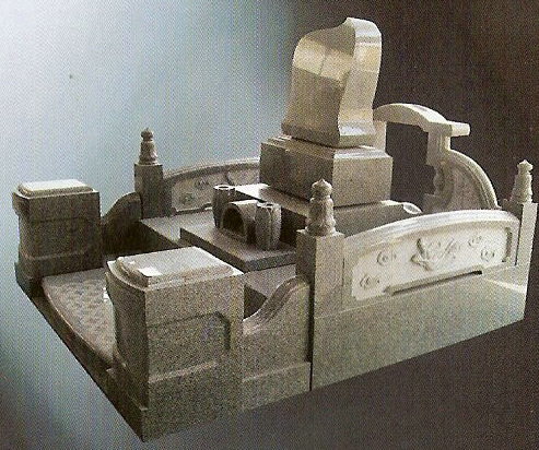 Exquisite carvings and detail radiate from this chinese style tombstone. Unique layout and cultural designs.