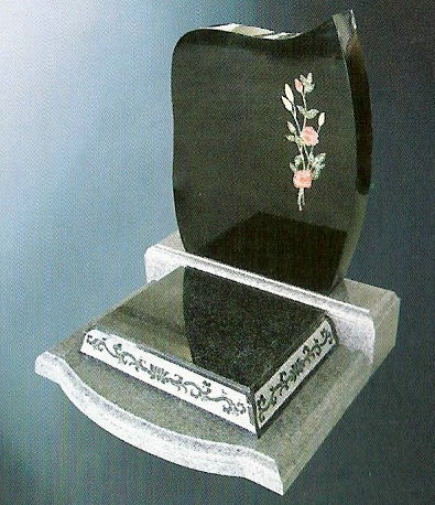 This granite monument is priced with base size 10x20x4 with a 6" thick back base. Shown in G614 grey granite and jet black granite.