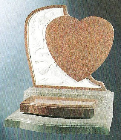 This heart shaped memorial is priced with base size 20x10x4. This monument is shown in granite colors Grey G614 base and Redish Brown top.
