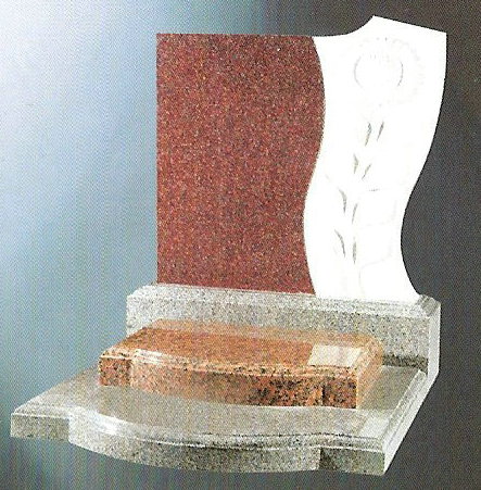 This upright cemetery memorial is pictured in India red on the upright part , grey g614 on the base , and tian shan red on the tablet.