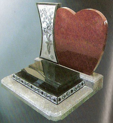 This heart shaped monument has a G614 grey granite base , red granite heart , and a jet black bevel.