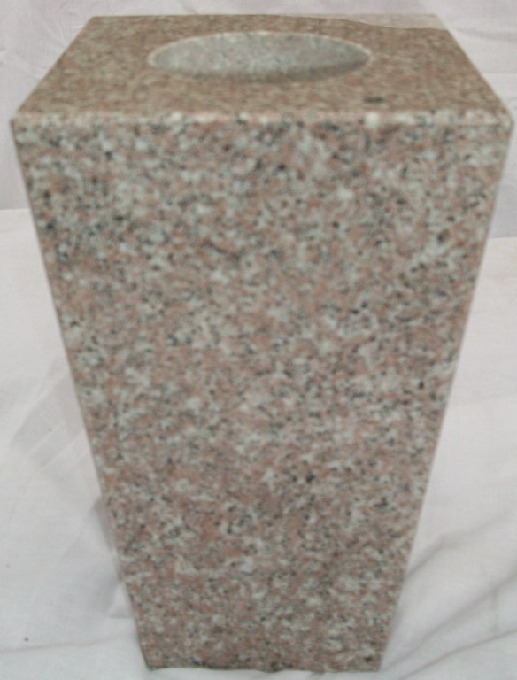 This tapered style high quality solid Anxi granite vase is shown here in use as an infant memorial and features the word "Baby" the traditional name and a date, all of which was sandblasted and then enhanced by the addition of a black lithichrome stone paint. Designs can also be engraved on vases so contact us with your design needs and we will provide you with a custom quote. |