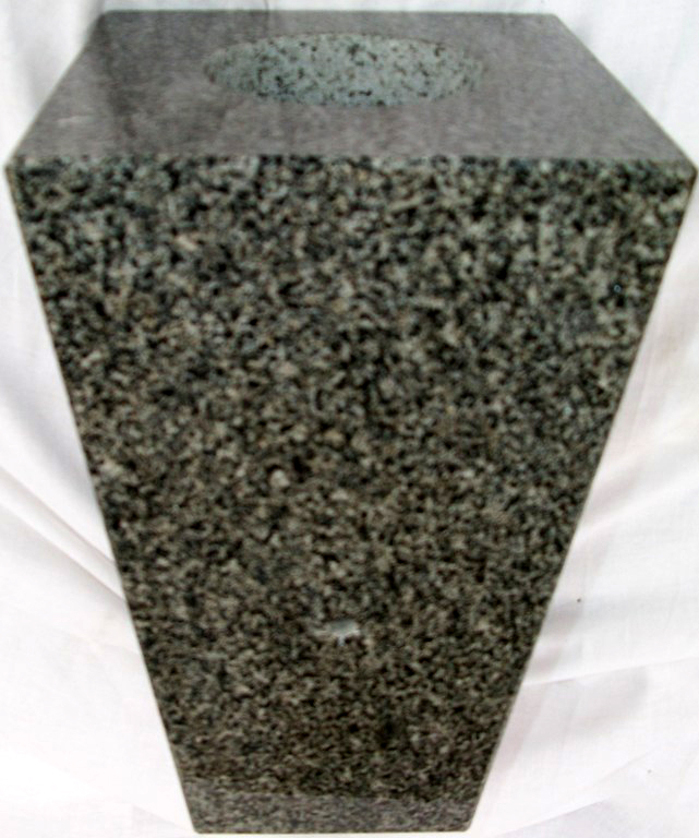 This high quality solid granite tapered vase measures 10 inches tall, 6 inches across at the top, and 4 inches across at the bottom. Shown here in G654 Dark Cloud Grey granite, but also available in a variety of other granite colors.