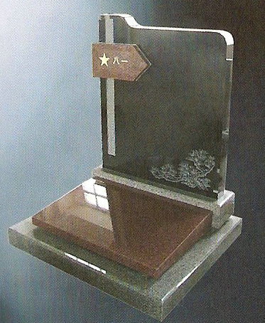 This upright memorial headstone is pictured in G654 grey on the top , G614 grey on the bottom , and India Red on the flag and bevel top.