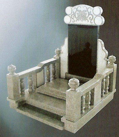 Chinese style memorial with steps leading to a jet black top. Detailed carved railing with exquisite design.