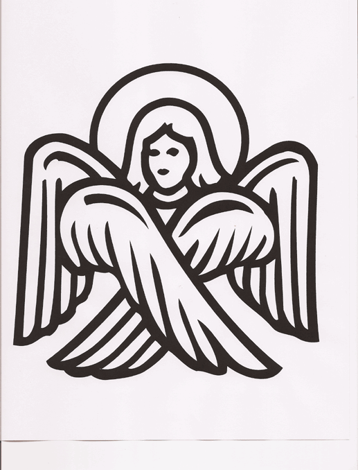 This unique angel design is reminiscent of a stained glass window and features an angel with a halo.