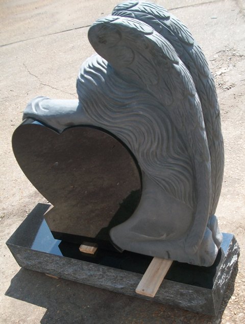 This view of the backside of the AN-01 model carved angel and polished heart monument showcases the intricate detail of the carving on the back of the memorial as well as the front.