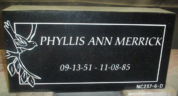 This affordable but enchanting marker's epitaph was completed using a sandblasted palladio urw t red italic font and then adorned with a beautiful sandblasted bird design and outline. Although these enhancements incur an additional fee they are the perfect way to memorialize your nature lover. Other animals such as deer and fish are available if they are more suitable for your needs. Please contact us for a quote these designs are more affordable than you think.