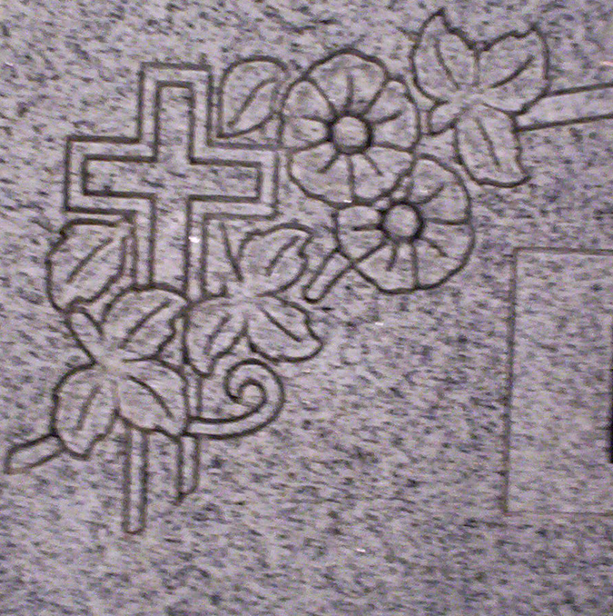 As shown here our designs are very versatile because we engrave in house. We can make your chosen design as simple and basic or as elaborate and detailed as you want them. We can add lithichrome stone paint to enhance the design or leave it as is. Shown here the design is given a little more detail and does not have paint, but the Cemetery Headstone Combination Cross, Flowers, and Border Design is both eye-catching and affordable. Contact us today and let us help you design the perfect memorial to your loved one.