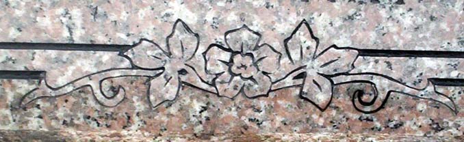 This versatile engraved rose spray design can be used in multiple ways to decorate a cemetery headstone. It can be used to adorn the top or grace the bottom as shown here. It can be combined with a border or stand alone. It can be enhanced with the addition of a lithichrome stone paint or without. You simply cannot go wrong with this traditional design. This design is shown without the addition of paint on our high quality solid anxi granite and with the addition of a basic border.