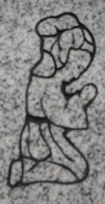 This design portrays a child kneeling in prayer and is shown here on our high quality solid gray Cemetery Headstone and enhanced by an optional but free of charge addition of black lithichrome stone paint.