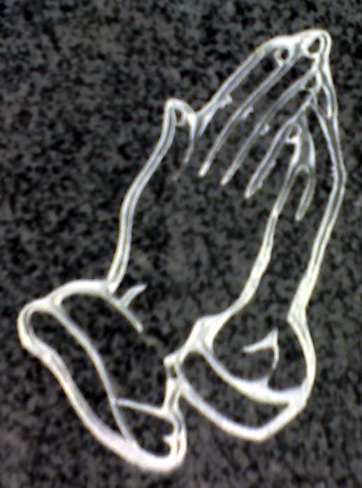This Cemetery Headstone Praying Hands Design is shown on a Dark Cloud Grey Granite