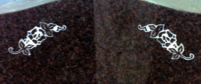 This versatile Engraved Rose Design can be used as a single design or grouped together as shown for an overall design. The roses gracing each corner is an elegant design choice and is shown here on our high quality solid India Red Granite and highlighted by the addition of a white lithichrome stone paint.