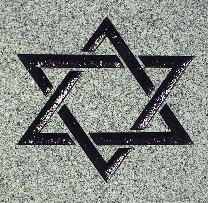 This bold Star of David Design is shown on our high quality solid Dark Gray Granite and is enhanced by the addition of a black lithichrome stone paint.