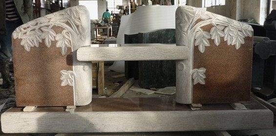 Elegant Cemetery Memorial Bench This exquisite grave memorial bench was ordered in an Imperial Pink granite color and features sandblasted engraving that was highlighted with white litho paint. Call for details at 314-807-6910. |  Striking Granite Grave Bench This granite memorial bench was special ordered in an Imperial Pink granite color. The engraving was sandblasted and filled with white litho paint. Email us for details at chris@headstonesusa.com |