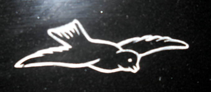 This second part of the angel, lamb, and dove corner design features the dove in flight and is shown on our jet black Granite