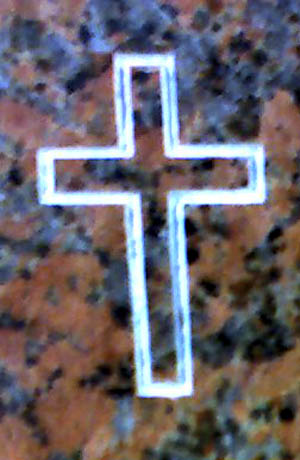 This basic cross design is shown on our high quality solid India Red Granite and enhanced by a white lithichrome stone paint.