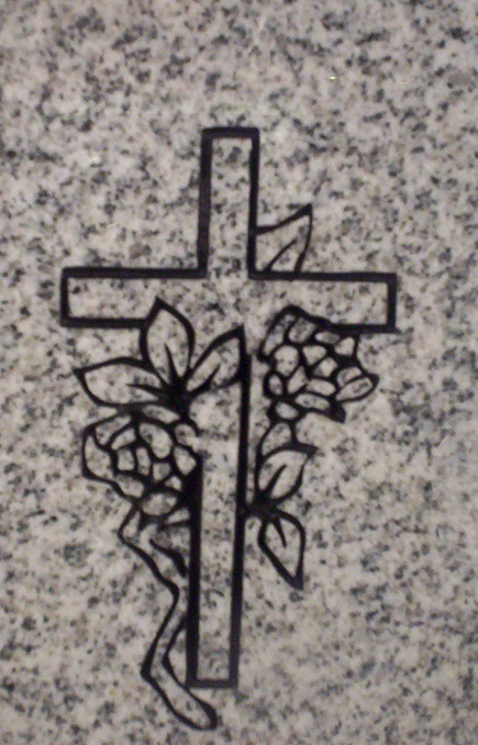 This beautiful combination design of a basic cross surrounded by flowers is shown on our high quality solid Gray granite and is enhanced by the addition of a black lithichrome stone paint.