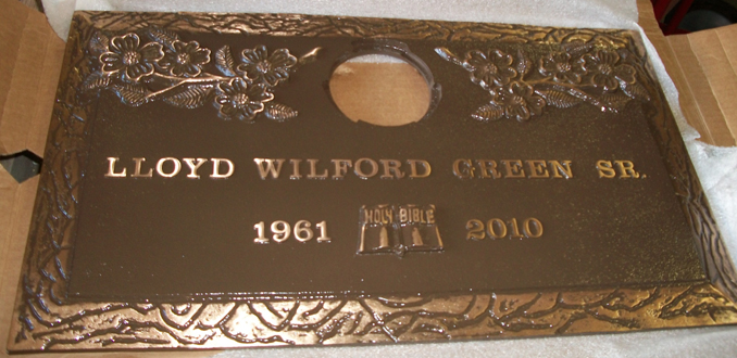 This beautiful memorial features our high quality bronze plaque with the name, years, basic border, and flowering dogwood design that is included in the quoted price. To add a bronze vase, an emblem of your choice or to add the months and days incurs additional cost. For more information on our bronze memorials contact us today for a free consultation.