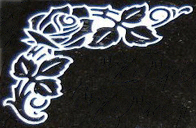 This image shows a rose floral corner piece. This particular engraving is shown on a jet black granite monument. Both the granite and the engraving are of the highest quality offered at the most reasonable prices. Corner pieces such as this provide memorials with a personal touch of appearance.