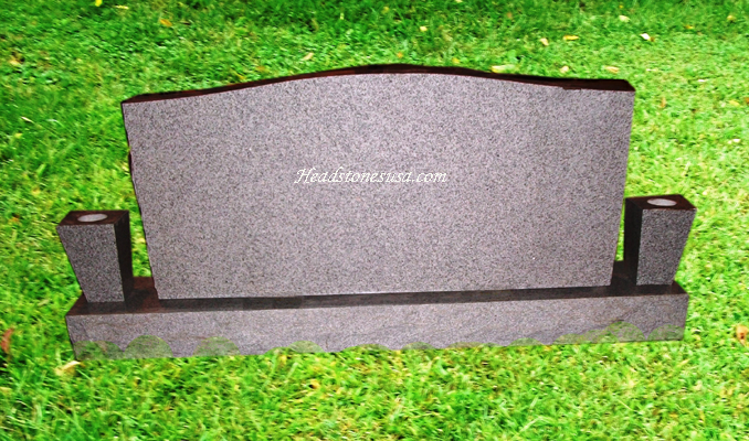 This high quality solid granite upright monument features a top that measures 48 inches left to right, is 6 inches thick, and 24 inches tall with a polished front and back and rough cut top and sides along with a base that measures 66 inches from left to right, is 12 inches wide and 6 inches thick with a polished top and front, back, and sides that are all rough cut. This model is priced to include two tapered style vases (as shown).