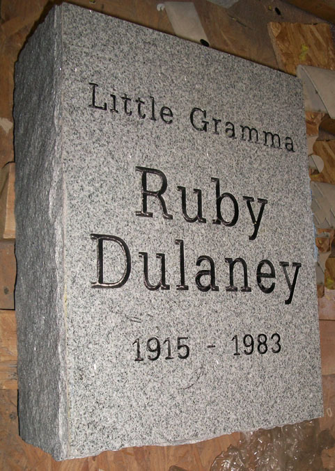 This simple memorial features a custom epitaph as well as the traditional name and dates shown here engraved into our high quality solid Gray Granite and then enhanced by the addition of a black lithichrome stone paint.