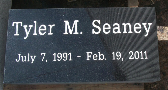 This basic tribute features simply the name and dates all of which was sandblasted in to our high quality solid jet black granite and then enhanced by the addition of a white lithichrome stone paint.