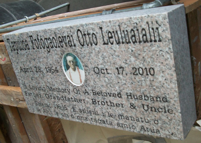 This high quality solid Anxi granite memorial marker features the traditional name and dates as well as an oval shaped ceramic photo and a custom epitaph in a foreign language.