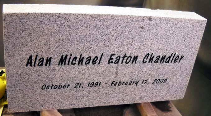 This engraved 24x12x3 high quality solid Georgia Gray Funeral Memorial is shown completed with the traditional names and dates sandblasted into an unusual Marker Acct. font style (which is just one of our over 1000 different font styles available) and enhanced by the addition of a black lithichrome stone paint.