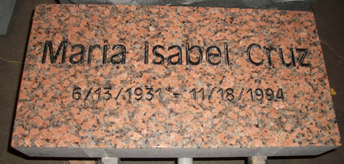 This traditional grass marker features simply the name and dates sandblasted and then enhanced by the addition of a black lithichrome stone paint.
