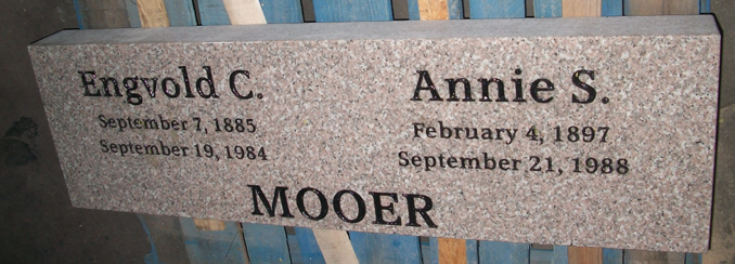 This basic memorial marker features the surname across the bottom with two individual name and dates shown here engraved into our high quality solid Anxi granite and then enhanced by the addition of a black lithichrome stone paint.