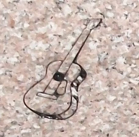 This acoustic guitar cemetery headstone design 1267 is shown here engraved on our high quality solid Anxi granite and then enhanced by the addition of a black lithichrome stone paint for emphasis. A great motif for use with a tribute to a guitar player or music lover.