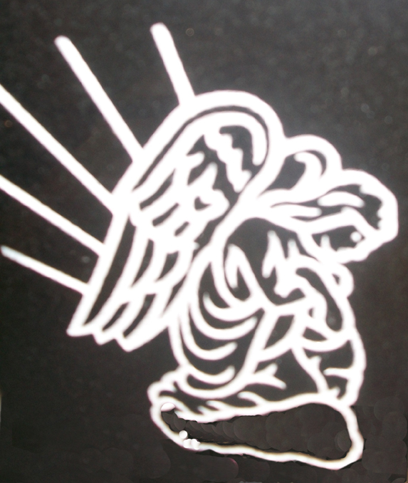 This reverent kneeling angle tombstone design 127 is shown here sandblasted onto our high quality solid black granite and then enhanced by a white lithichrome stone paint. A great way to memorialized your loved one's devout nature and dedication to God.