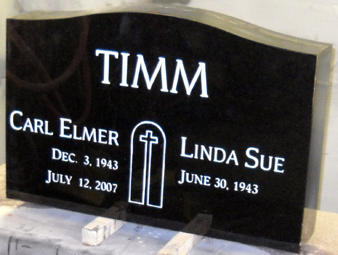 This stunning upright monument in solid jet black granite is shown as a companion monument and is completed with two different fonts highlighted by a white lithichrome stone paint for dramatic emphasis. The names are completed in a congress t lig font and the dates are completed in a worcester round t reg font. Although we carry a wide variety of standard designs, we always welcome original designs just like the one shown here. Contact us with your specifications or ideas and we will quote you a price. A great accessory for this headstone would be a solid granite vase or urn. Click on the link to view our selection or contact us with any questions.