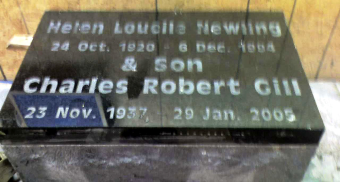 This high quality solid jet black U-01 model funeral memorial is shown here being used as a family monument with the names and dates of a mother and son sandblasted and enhanced by the addition of a white lithichrome stone paint.