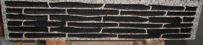 This engraved brick wall cemetery headstone design 3089 is shown here sandblasted into our high quality solid Gray Granite and then enhanced by the addition of a black lithichrome stone paint to make each individual brick more visible.