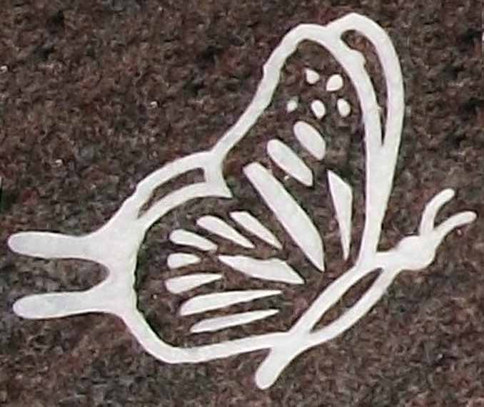 This charming and whimsical butterfly cemetery headstone design 270 is great a great choice for a juvenile memorial, in combination with a garden or floral motif, or simply alone to add a touch of beauty to the tribute of a life cut short or a long life well lived. Shown here sandblasted into our absolutely gorgeous multi-colored purple granite and then enhanced by the addition of a white lithichrome stone paint.