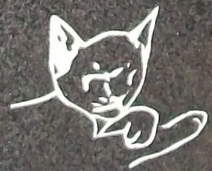 This adorable cemetery headstone design features a cat relaxing and licking its paw. A great choice for any cat lover. Shown here sandblasted on to our high quality solid G654 Dark Gray Granite and then enhanced by the addition of a white lithichrome stone paint.