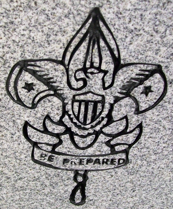 This engraved Boy Scout Insignia Design 783 with the motto "Be Prepared" is one of the most traditional Boy Scout Emblems and is a great way to memorialize a life long Boy Scout enthusiast. Shown here sandblasted on to our high quality solid Gray granite and then enhanced by the addition of a black lithichrome stone paint.