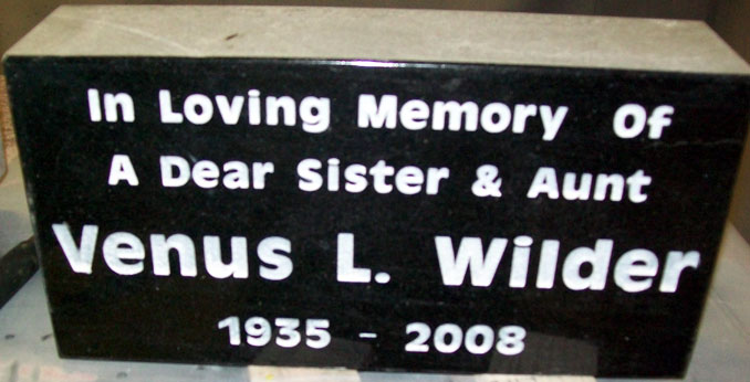 This tribute "In Loving Memory" to a "dear sister and aunt" was completed in a bold antique olive font enhanced by a white lithichrome stone paint.