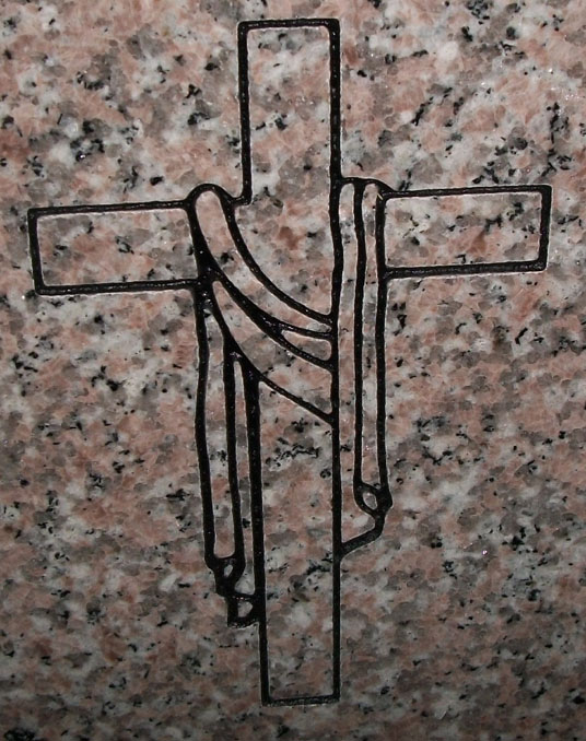 This beautiful and symbolic cross headstone design 563 is shown here engraved on our high quality solid Anxi granite and then enhanced by the addition of a black lithichrome stone paint.