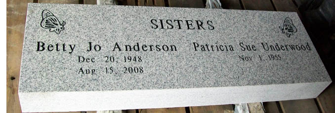 This impressive companion marker measures 36 inches across 12 inches high and 2 inches thick and provides plenty of room for epitaphs and customization. This marker is shown used for a set of sisters and is completed in a times new roman font highlighted by a black lithichrome stone paint. The addition of the butterflies in each corner adds a feminine touch and charm to the entire monument. To view our selection of standard designs click on the link or contact us with your own original design ideas.