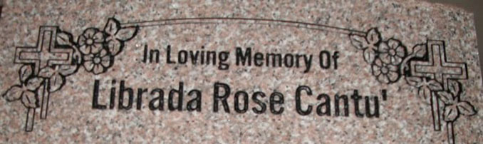 This beautiful and symbolic border features a cross surrounded by flowers in each upper corner with a drape style swag connecting the design. Shown here sandblasted into our high quality solid G663 Granite and then highlighted by the addition of a black lithichrome stone paint.