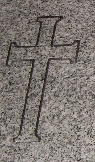 This unusual cross design 558 shown here engraved on our high quality solid gray granite is enhanced by the addition of a black lithichrome stone paint.