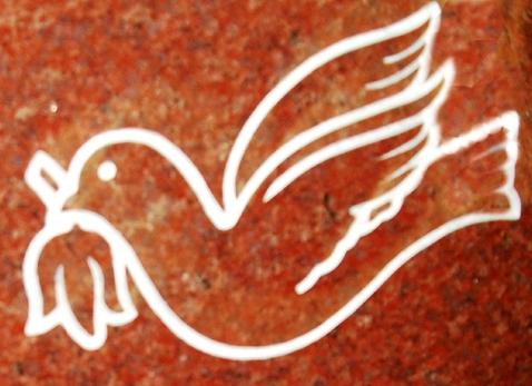 This symbolic and peaceful sandblasted design features a single dove holding an olive leaf in its beak to represent peace and hope. This motif is shown engraved on our high quality solid India Red Granite and enhanced by a white lithichrome stone paint.