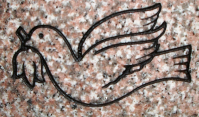 This simple yet symbolic engraved dove design features a single dove in flight carrying an olive leaf which is a traditional symbol in Christianity of God's promise, hope, peace and tranquility. A great choice for any monument but shown here sandblasted onto our high quality solid Anxi granite and enhanced by the addition of a black lithichrome stone pain