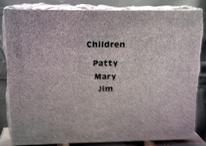This is the backside of the Double Upright Monument. The front and back of this significant 42x8x30 memorial has plenty of room to list the names of family members or for large epitaphs. The back of this stone was used to list the children and is shown in an antique olive bold font.