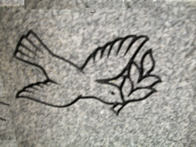 This engraved dove with olive branch cemetery headstone design 209 is a beautiful and traditional symbol of peace and a great way to pay tribute to your loved one. Shown here sandblasted onto our high quality solid Gray granite and then enhanced by a black lithichrome stone paint.